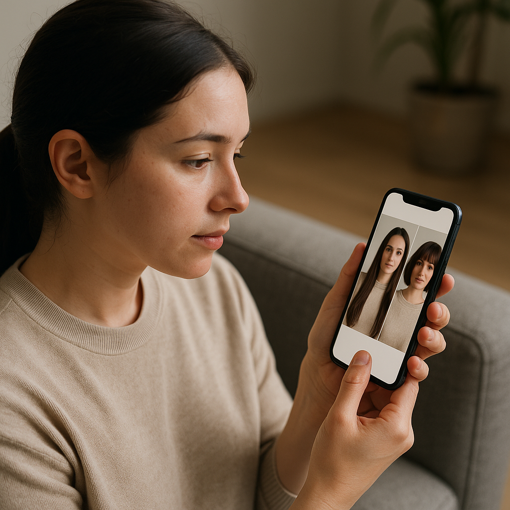 Imagine que você está pensando em fazer uma mudança drástica no seu visual. Cortar 20 centímetros de cabelo é uma decisão importante que você não quer tomar impulsivamente. Com um simulador de IA, você consegue enxergar exatamente como ficará com esse novo comprimento sem o compromisso imediato. Você explora a mudança digitalmente quantas vezes quiser até se sentir confiante.